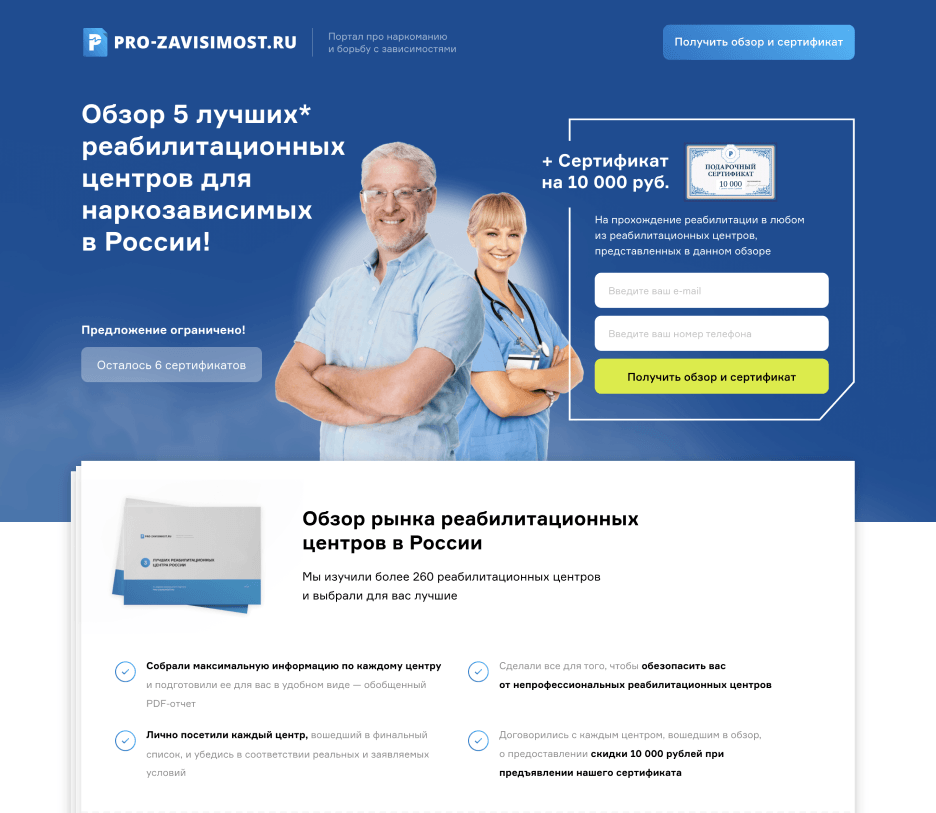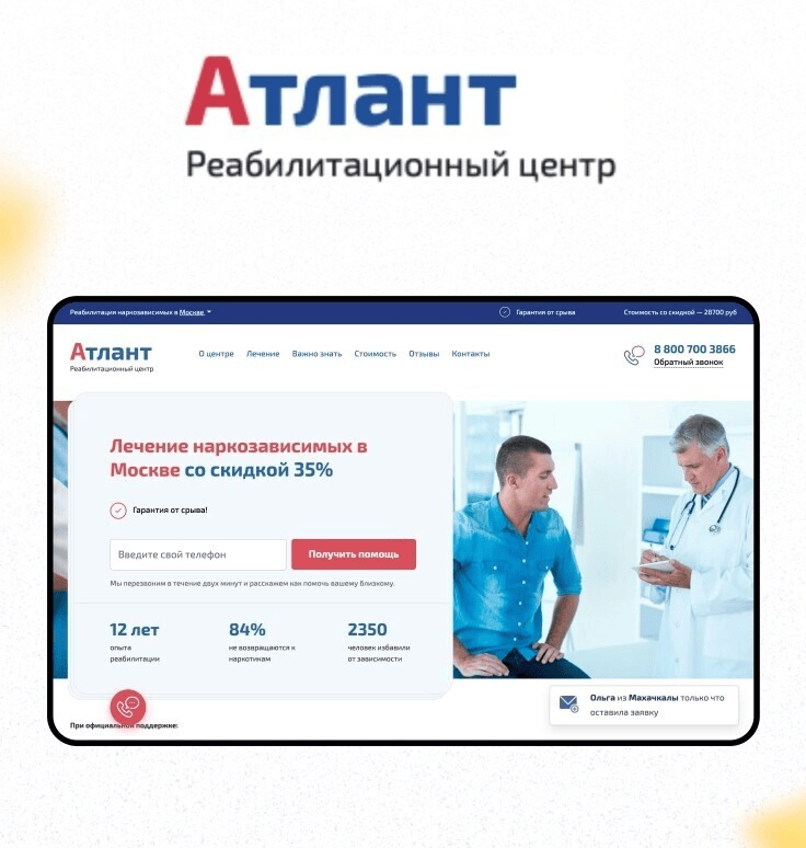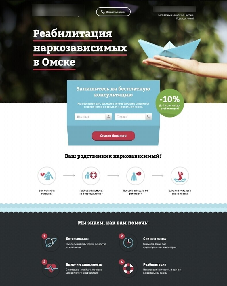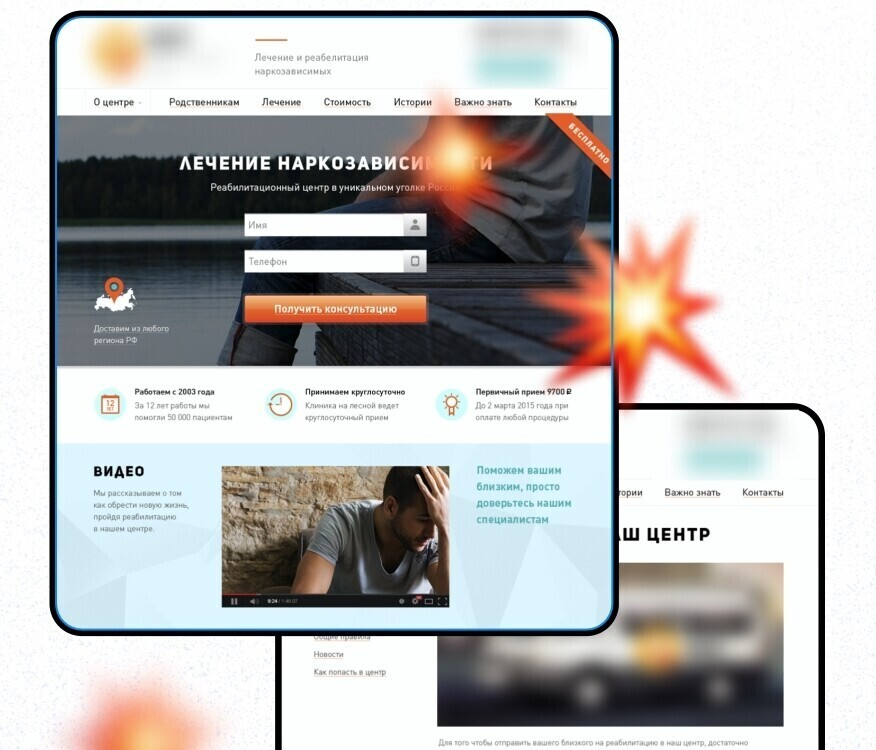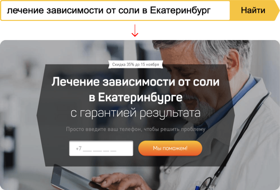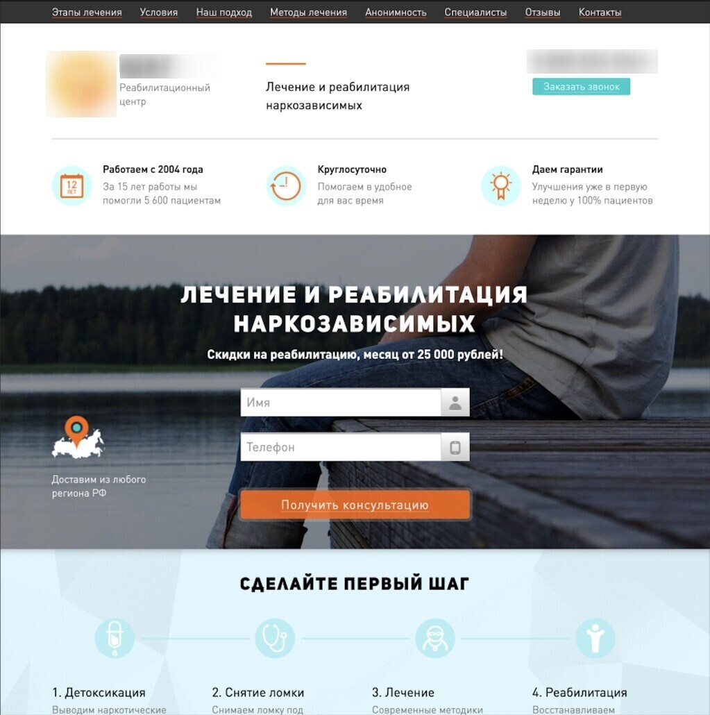 Когда мы стали подставлять в заголовок город клиента, конверсия выросла, и уже в разговоре доносился смысл, что на самом деле рекомендуется проходить реабилитацию не в своём регионе.
