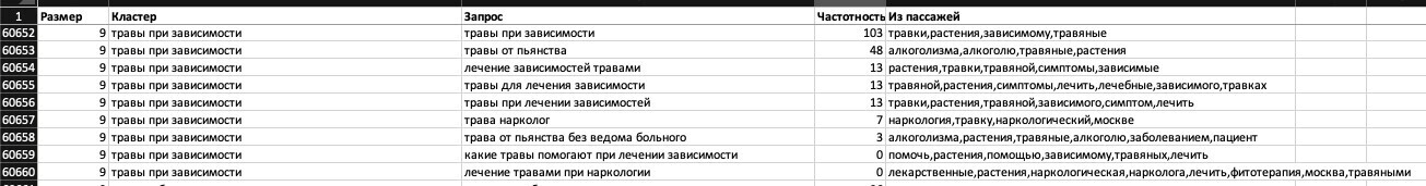 Дальше всё это группировалось вручную в смысловые группы, которых получилось 120 штук. После мы разделили их по теплоте: