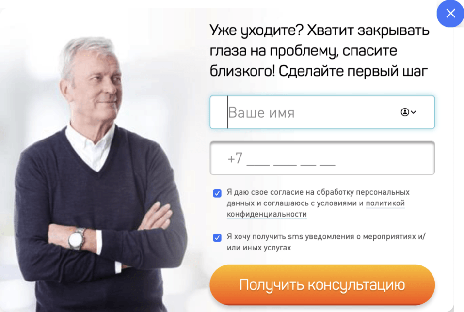 В виду специфики тематики (эмоциональная сложность обратиться за помощью), хорошо сработало добавления формы захвата при попытки закрыть окно.