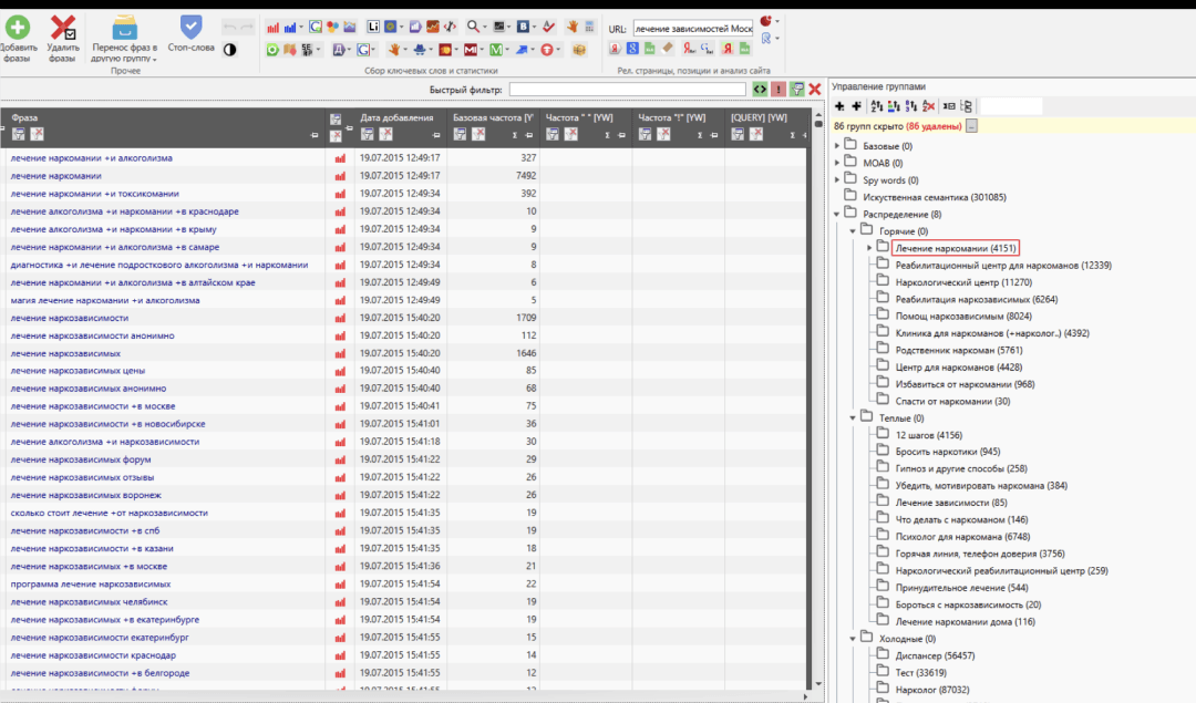 - 120 смысловых групп создано для группировки ключевиков