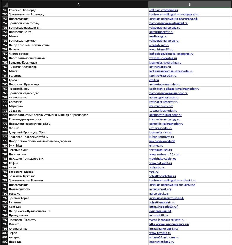 - Собрали адреса сайтов и названий компаний всех конкурентов в РФ