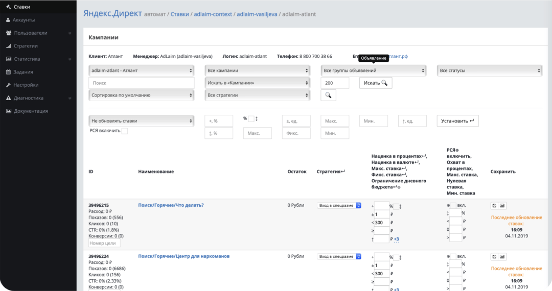 Встал вопрос управления ставками для такого объёма рекламных кампаний и ключевых слов. Делать это внешними сервисами стоило от ₽ 35 000 в месяц.