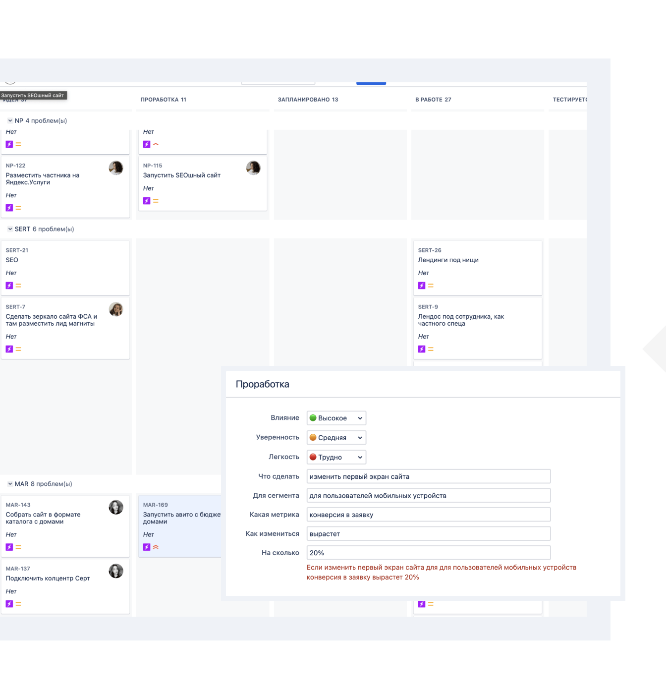 Все идеи, гипотезы и задачи автоматически фиксируются.
